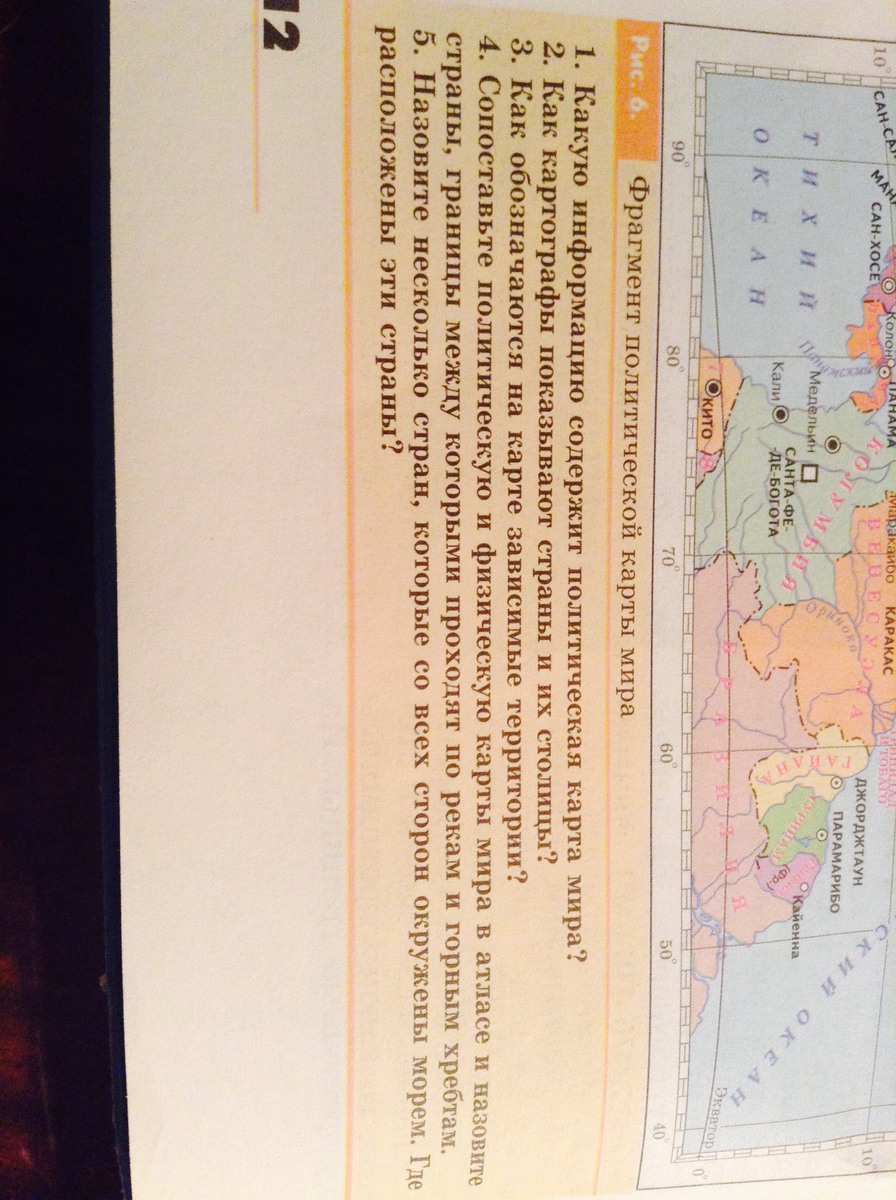Картографы показывают государства разными цветами. Столицы указаны черными точками. Если государство маленькое по площади название столицы вынесено за пределы карты и указаны цифрами.