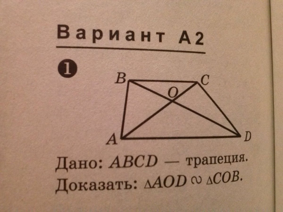 1) Т.к угол АOD равен углу BOC как вертикальные, и уголOBC равен углу ODAпри паралельных прямых AD BC, то они подобны