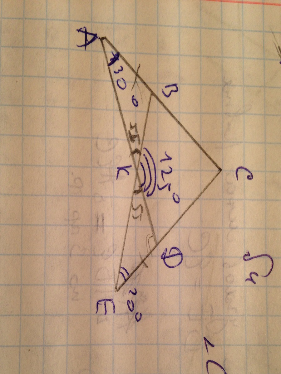 1. ΔАВС: <A=30°, <AKB=<EKD=55° (вертикальные)
