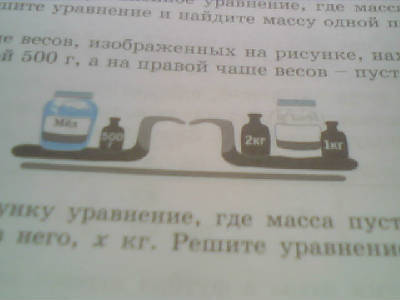 Составте по рисунку уравнение,где масса пустой банки у кг,а масса меда,налитого в него х кг.Решите и найдите массу меда в банке,составив краткое условие.