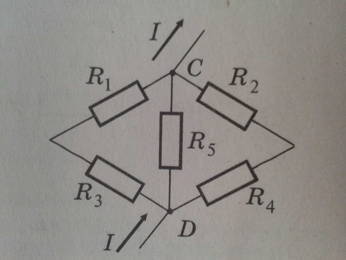определите сопротивление участка цепи, изображенного на рисунке между точками c и D, если при этом R1=2 R2=5 R3=20 R4=5 R5=10 ом