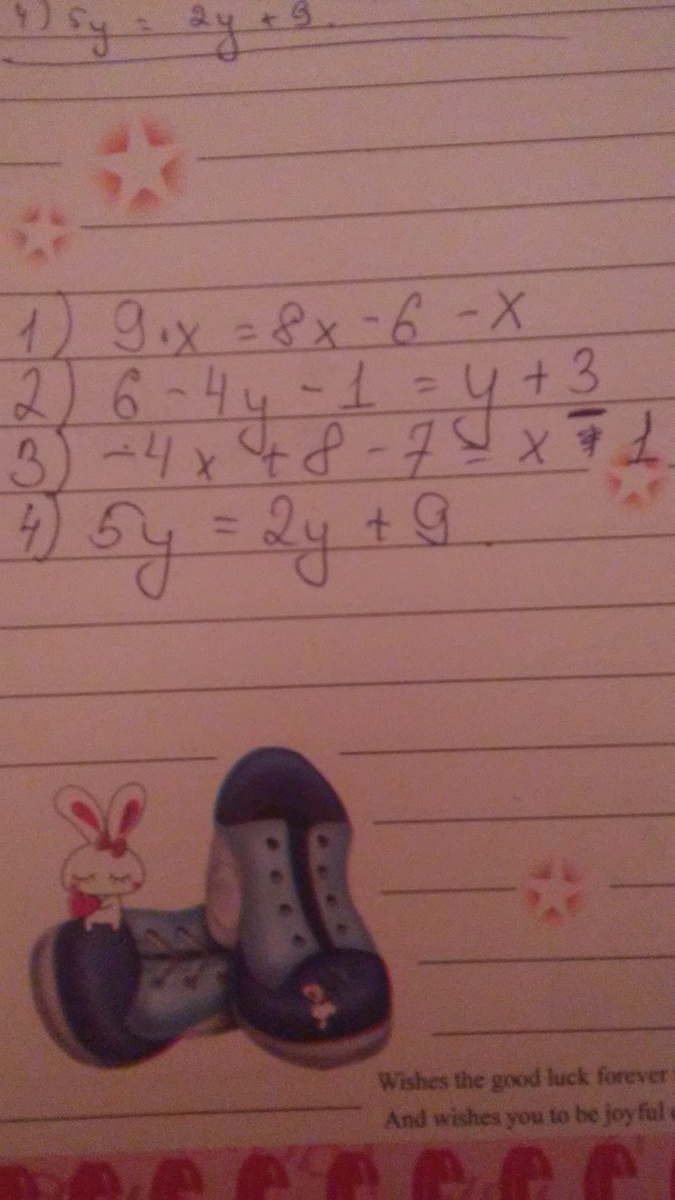2)6-4y-1=y+3;