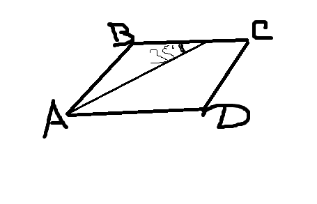 Найдите велечины углов параллелограмма ABCD, если биссектриса угла А образует со стороной ВС угол равный 35*