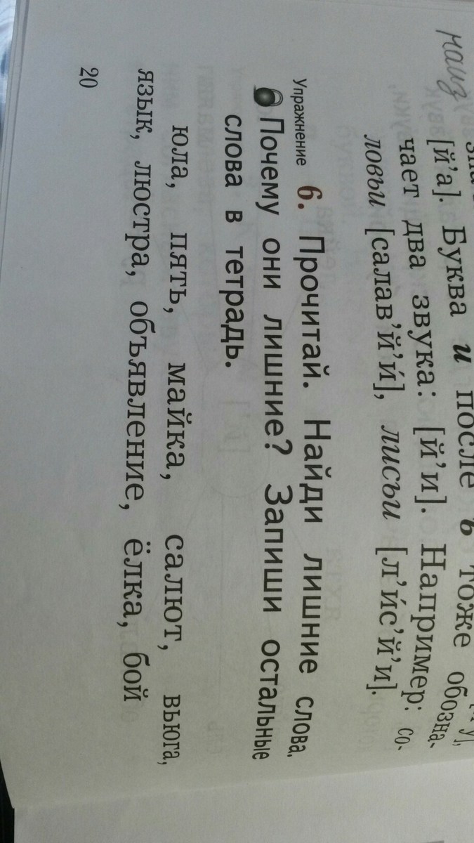 Предполагаю, что лишние слова, это те, в которых гласные буквы дают два звука (опираясь на кусочек предыдущего задания, идет тема фонетического разбора слов).