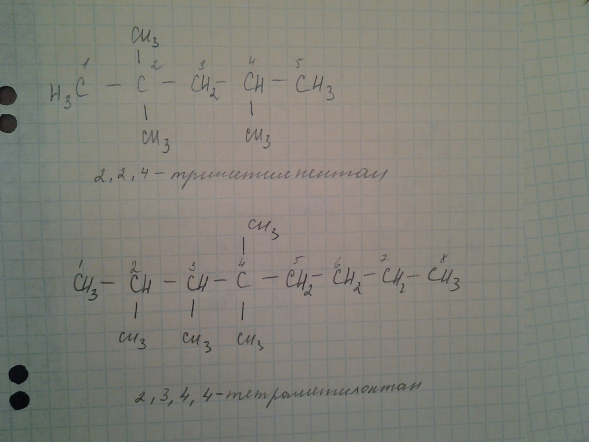 Составить структурную формулу: 2,2,4 - триметилгептан., 2,3,4,4 - тетраметилоктан. Помогите пожалуйста, буду очень признателен!