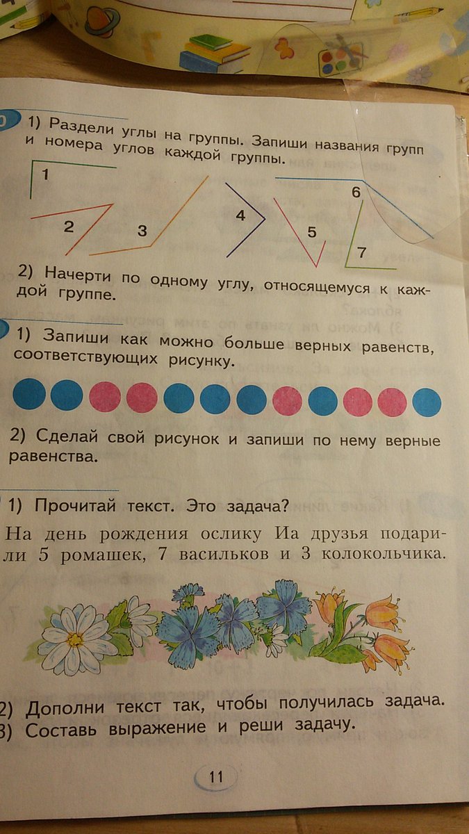 Запиши как можно больше верных равенств,соответствующих рисунку. Рисунок такой: 2 синих шара,2 красных шара,3 синих,1 красный,1 синий,2 красных и 1 синий( шары стоят в ряд цепочкой).