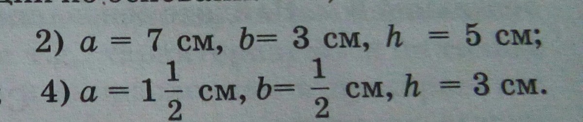 Найдите площадь трапеции по основаниям a ,b и высоте h