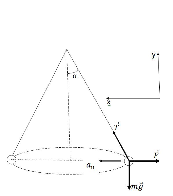 T*sin α - F = ma, T*sin α = F + ma (1)