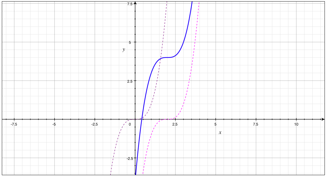 Полученный график функции показан самым жирным и самым синим на рисунке.