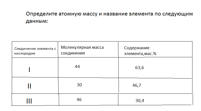 Определите атомную массу и название элемента по следующим данным: данные в таблице во вложении ... пожалуйста,объясните...