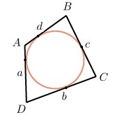 Свойство четырехугольника. Четырехугольник можно описать вокруг тогда и только тогда, когда суммы длин его противоположных сторон равны