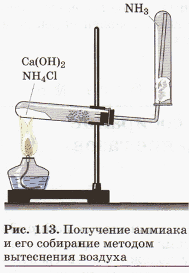 В фарфоровую чашку насыпьте хлорид аммония и гидроксид кальция объемом по одной ложечке для сжигания веществ. Смесь перемешайте стеклянной палочкой и высыпьте в сухую пробирку. Для обнаружения аммиака поднесите к отверстию перевернутой вверх дном пробирки влажную фенолфталеиновую бумажку. Немедленно закройте отверстие снятой пробирки большим пальцем и опустите в сосуд с водой. Палец отнимите только под водой. Что вы наблюдаете?