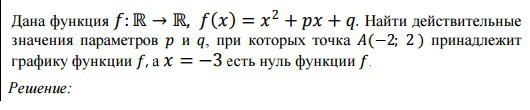 Дана функция f: ℝ → ℝ, f(x) =X² + PX + Q. Найти действительные