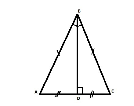 В равнобедренном треугольнике АВС с основанием АС проведена медиана ВД. Найти её длину, если периметр треугольника АВС равен 50дм, а периметр треугольника