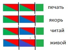 раскрась звуковую схему и подбери к ней подходящие слова - печать, якорь, читай, живой