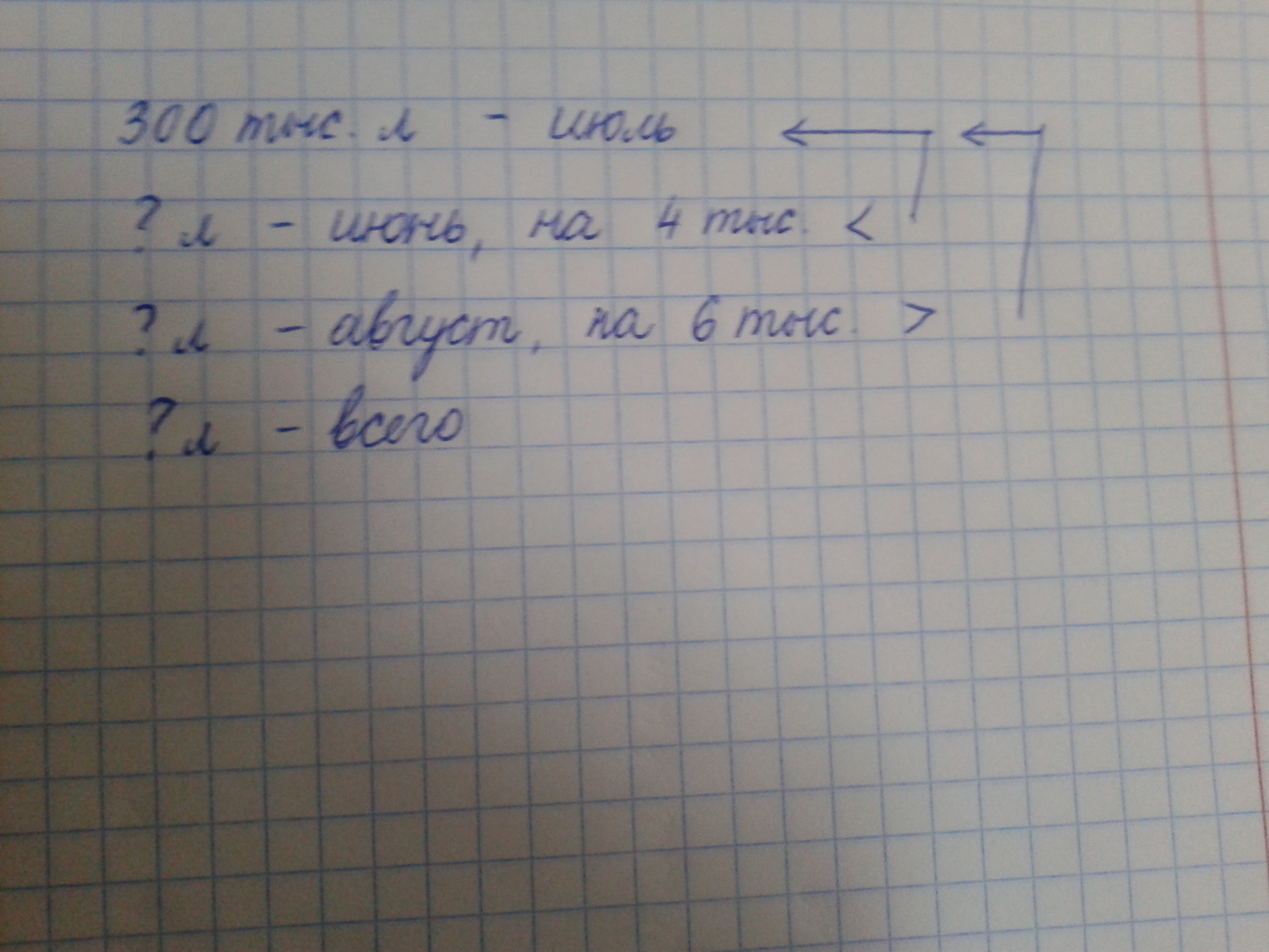 1) 300 - 4 = 296 тыс. л - за июнь