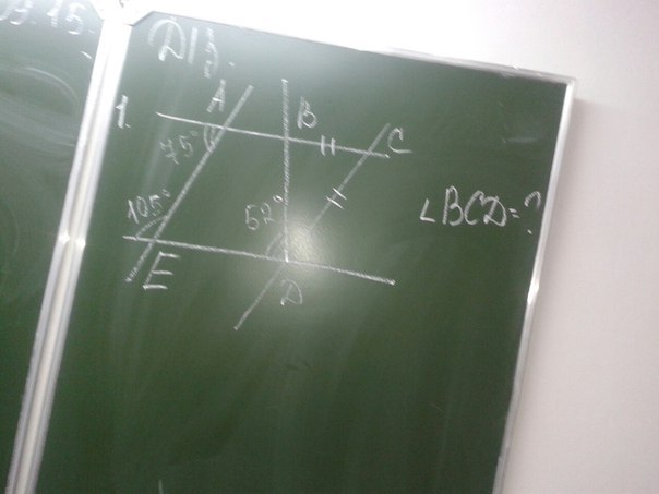 Параллельность доказывается из равенства 180 суммы двух внутренних односторонних углов 105 и 75