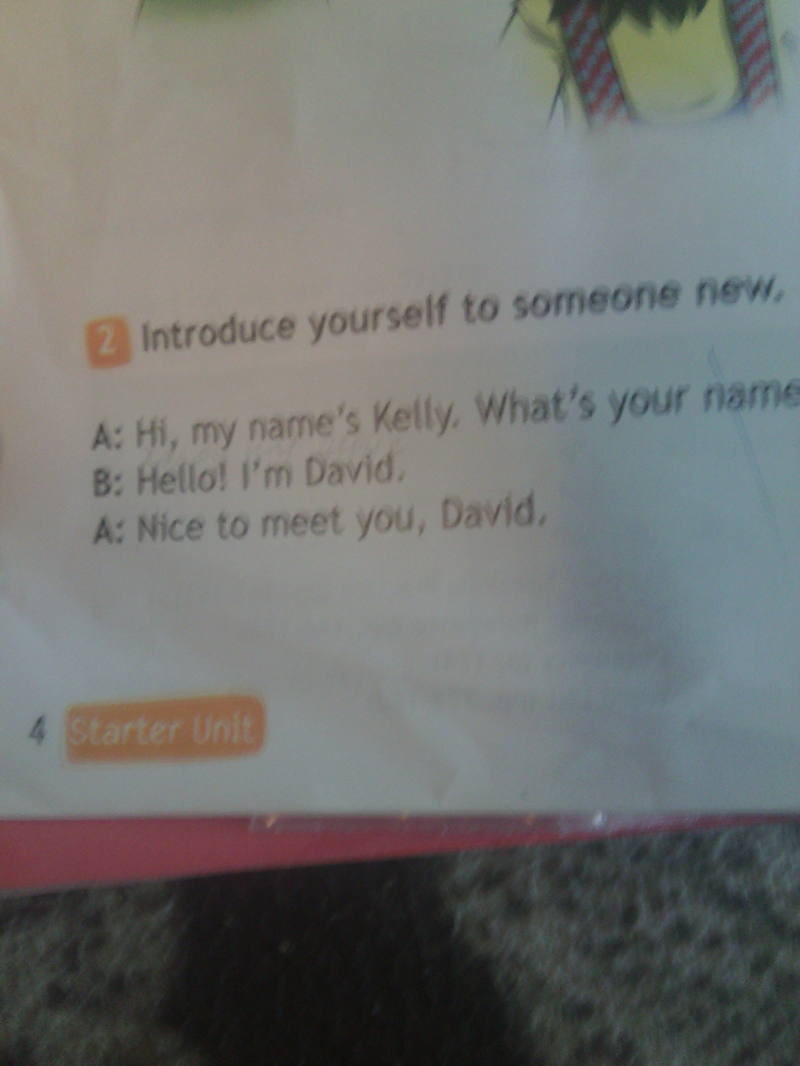 хай,май неймз Келли. воттс ю нейм? хелло! айм Давид. найс ту миит б, Давид