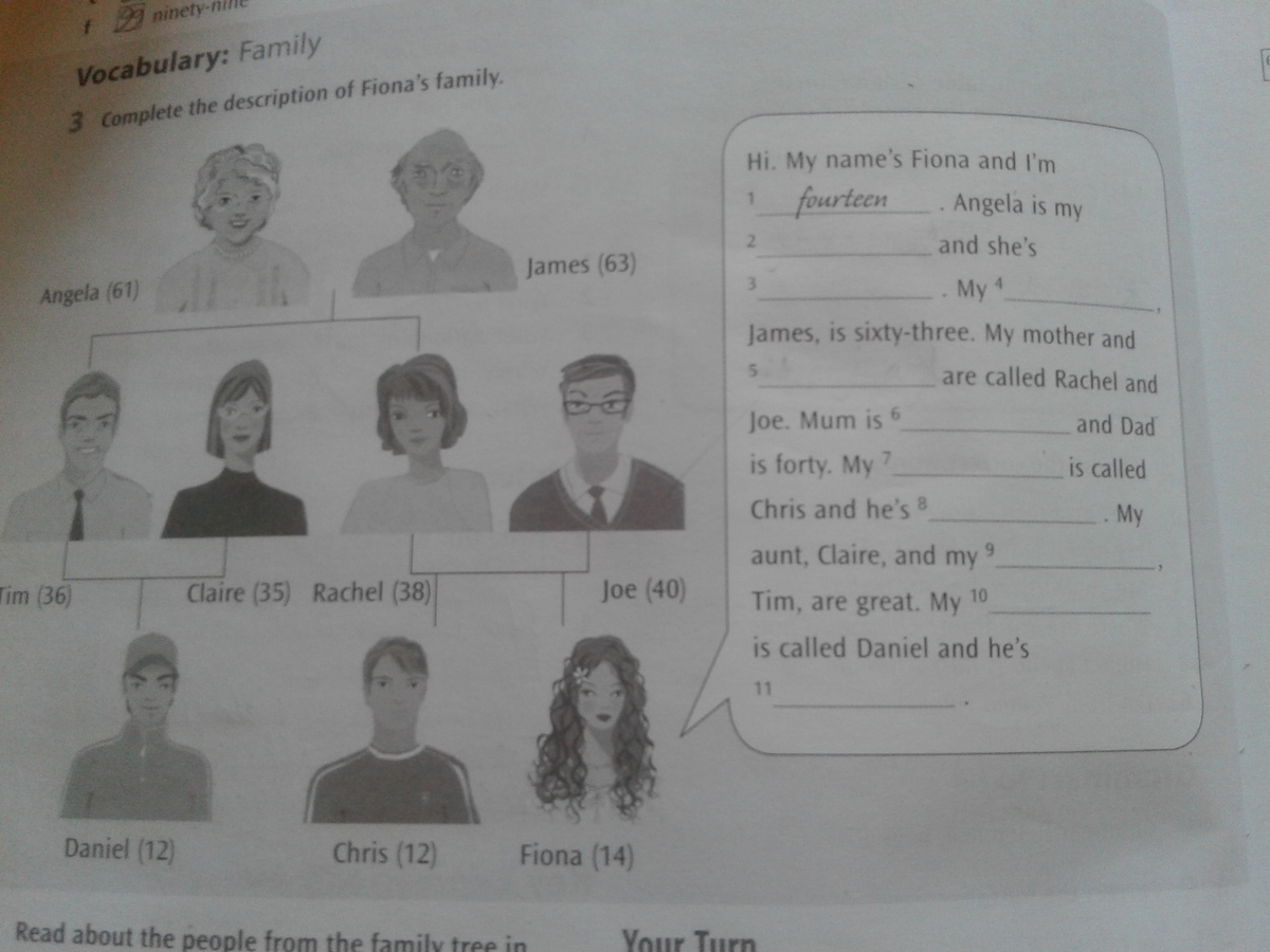 2) Grandmother 3)sixty one 4) grandfather 5) father 6) thirty eight 7) brother 8) twelve 9) uncle 10) cousin 11) twelve