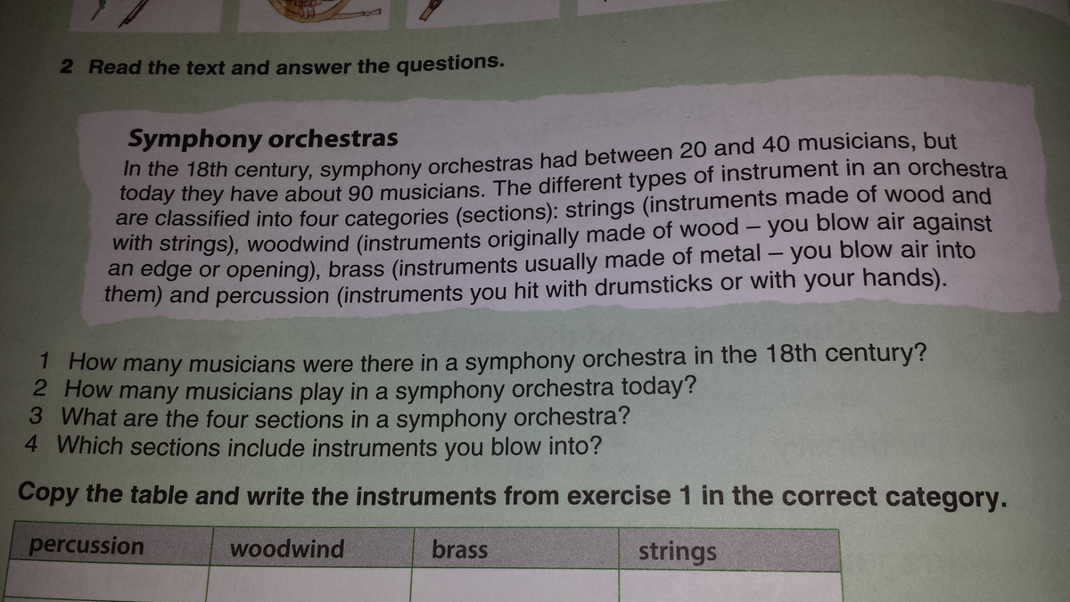 3.These sections are string, woodwind, brass and percussion.