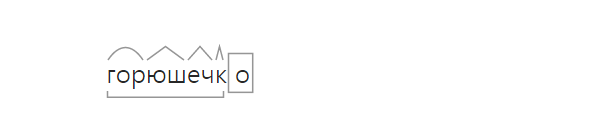 В слове «го́рюшко»: слогов—3 (го-рю-шко), букв—7, звуков—7:г→[г]:согласный, парный звонкий, парный твёрдыйо→[о]:гласныйр→[р']:согласный, непарный звонкий, сонорный, парный мягкийю→[у]:гласныйш→[ш]:согласный, непарный глухой, непарный твёрдыйк→[к]:согласный, парный глухой, парный твёрдыйо→[а]:гласный