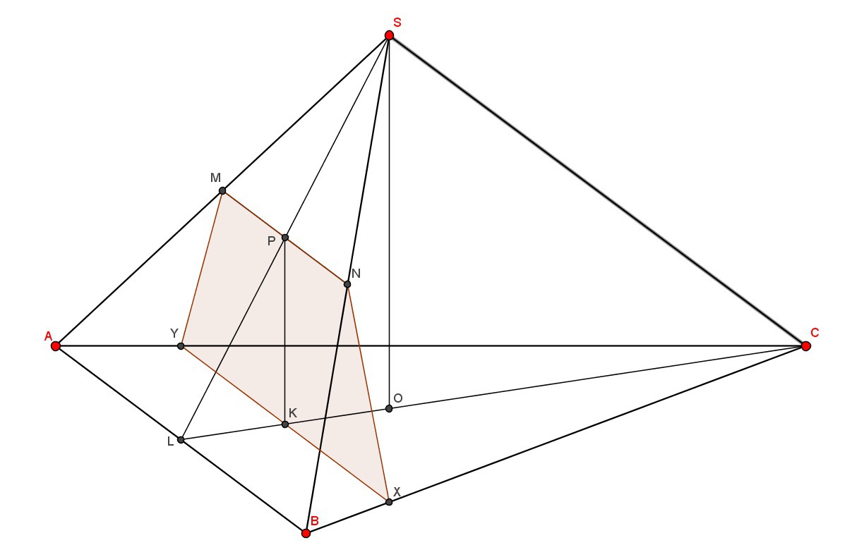 3. Опустим из P на CL перпендикуляр PK. P ∈ α, α ∩ (ABC) = XY, поэтому K ∈ XY, PK ⊂ α, PK ⊥ (ABC).