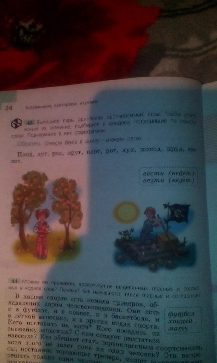 Плод - плот. Сорвать плод с дерева - плот плывет по реке.