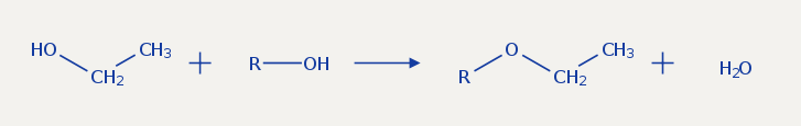 Водоотнимающий агент (напр. P2O5 или H2SO4). Присутствие неорганической кислоты (напр. H2SO4).