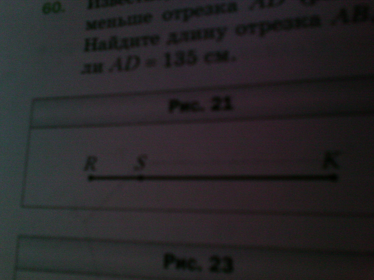 Известно что отрезок SK в 3 раза больше отрезка RS(рис.21). Найдите длину отрезка RS, если RS= 34 см.