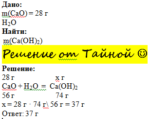 В реакцию с водой вступает оксид кальция массой 28 грамм.Вычислите массу образовавшегося вещества
