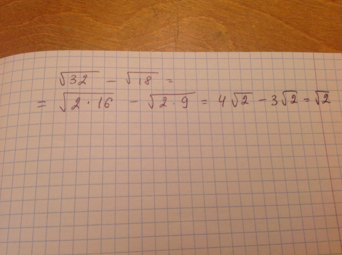 √32-√18=√2*√16-√2*√9=√2*(√16-√9)=√2*(4-3)=√2 (~1,414)
