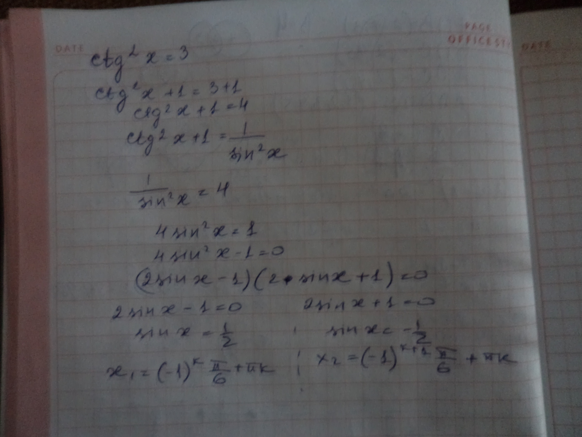 x = arcCtg √3 + π k, k ∈Z x = arcCtg (-√3) + πn, n ∈Z