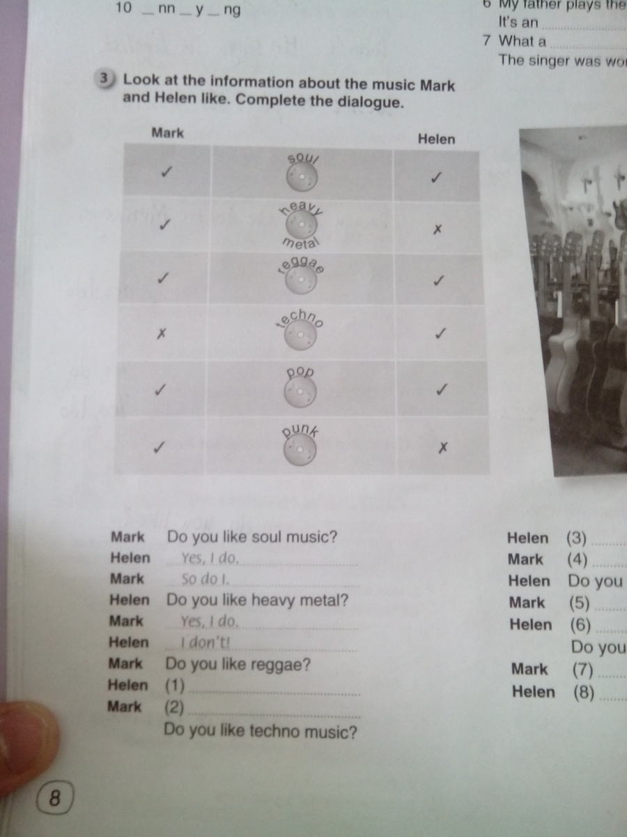 (5) Yes, I do. (6) so do I. (7) Yes,I do. (8) I don't.