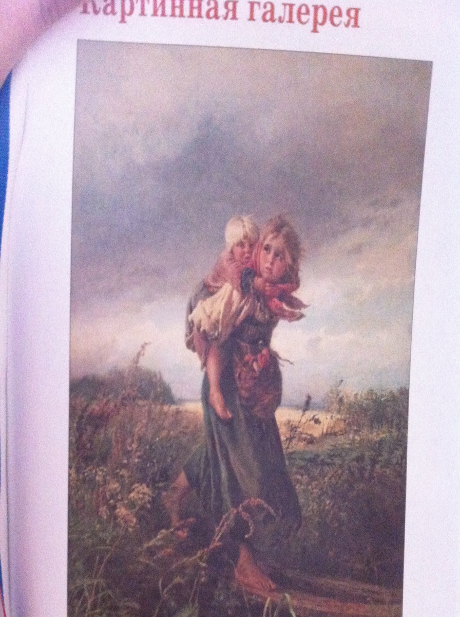Видимо, дети ходили в лес за грибами или ягодами — в руках у девочки корзина. Может быть, они уже направлялись домой, когда в дороге их настигла гроза. Вероятно, до деревни еще далеко, а поблизости нет никакого укрытия, где можно было бы спрятаться и переждать ливень.
