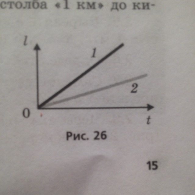 На рис 26 приведены графики зависимости пути от времени для двух тел, движущихся прямолинейно равномерно.