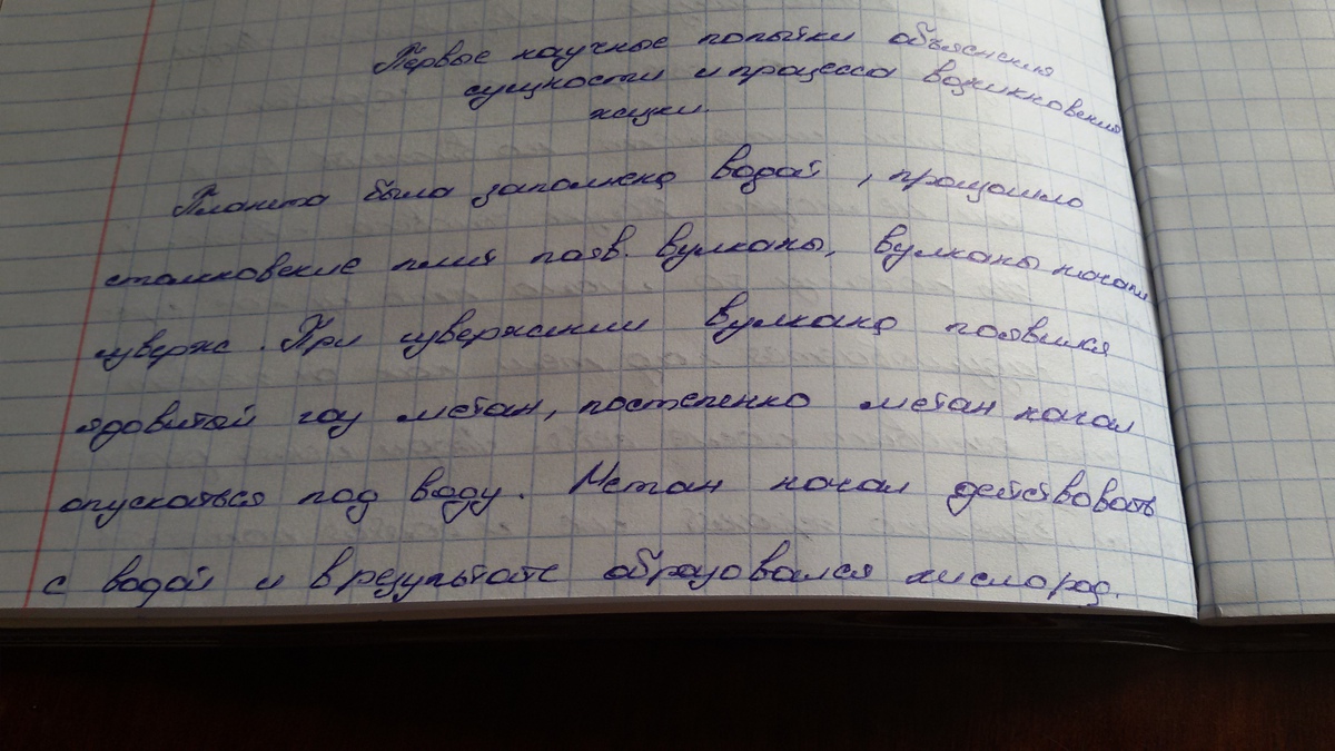 Нам сказали написать своё мнение о возникновении жизни на Земле в два альбомных листа