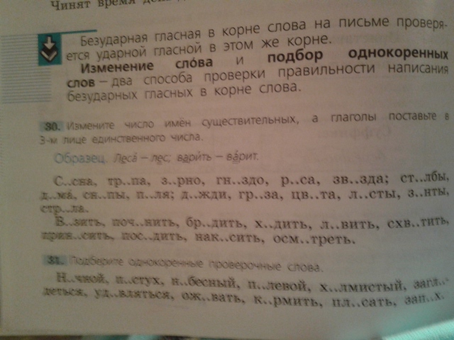 изменить число имен существительных и глаголов в 3 лице единственного числа номер 30