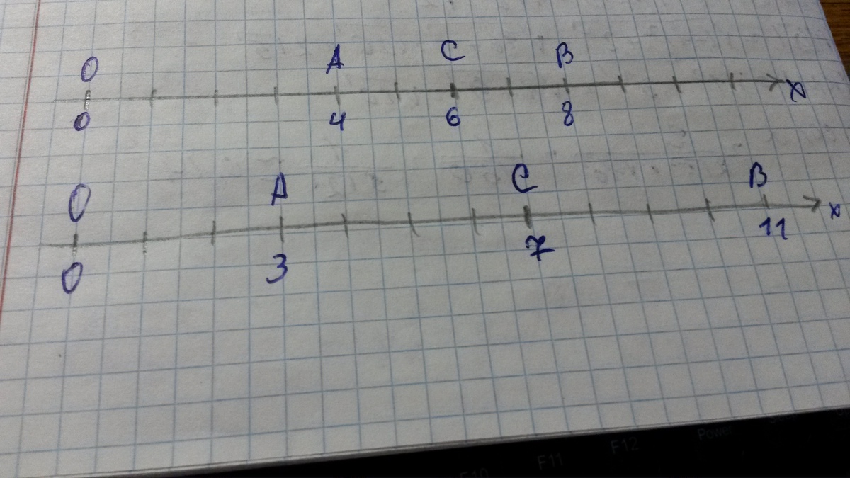 Начертите координатный (числовой) луч приняв за единичный отрезок длину 2 клетки тетради. На координатном луче отметьте точки А4, В8, и А3 и В11. отметьте