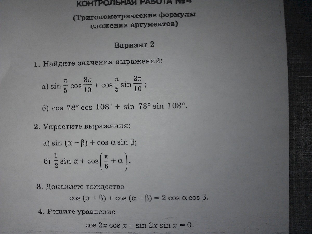 1)sin(3p/10+p/5)=sinp/2=1 (p=число пи)