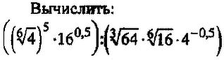 (4^{ frac{5}{6} }*4^{2*0.5}):(4^{ frac{3}{3} }*4^{ frac{2}{6} }4^{-0.5})= \ =4^{ frac{11}{6}- frac{5}{6}  }= \= 4^ frac{6}{6} =4