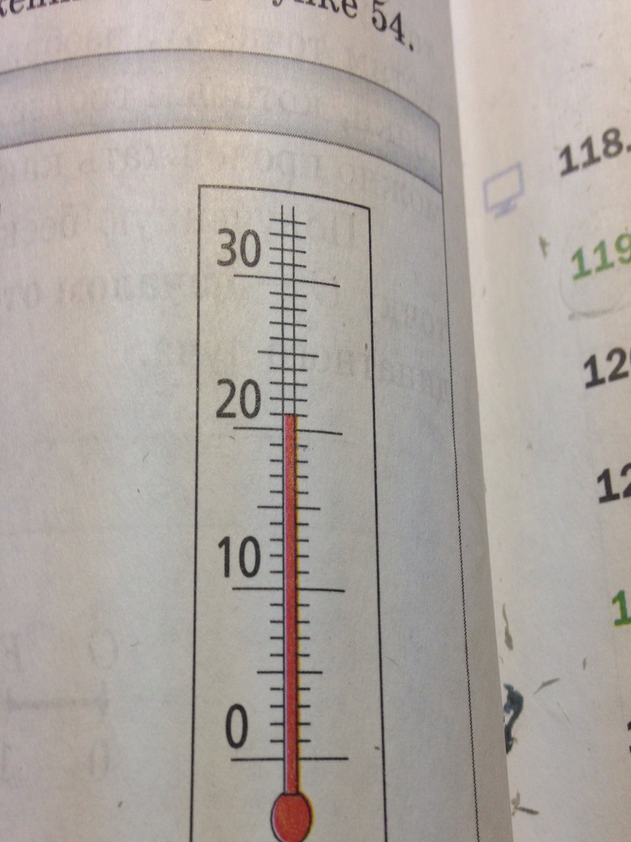 Какую температуру будет показывать термометр , изображенный на рисунке 54 , г , если его столбик :1) поднимается на три деления ; 2) опустится на 5 делений ?