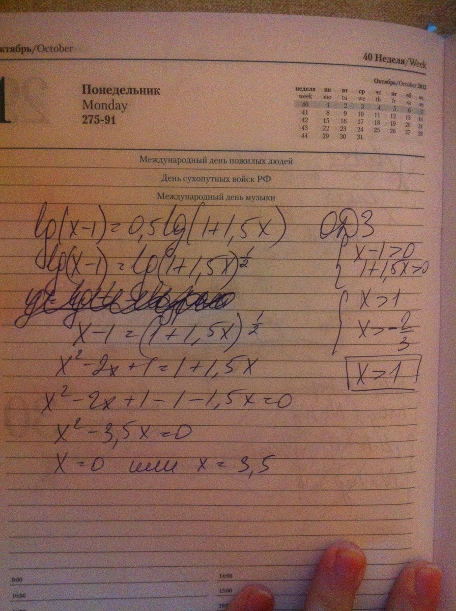 Решение во вложении. х=3.5, так как Х с учетом ОДЗ должен быть больше 1.