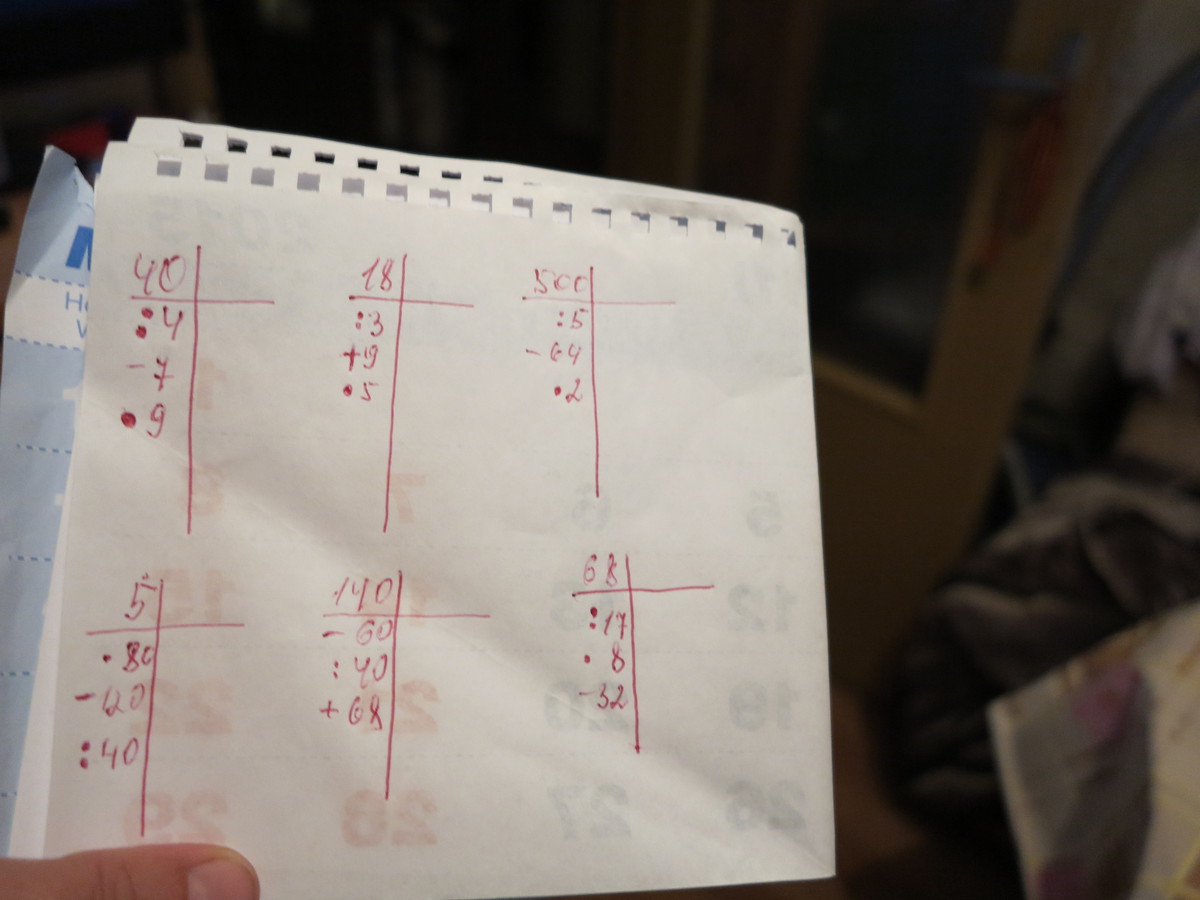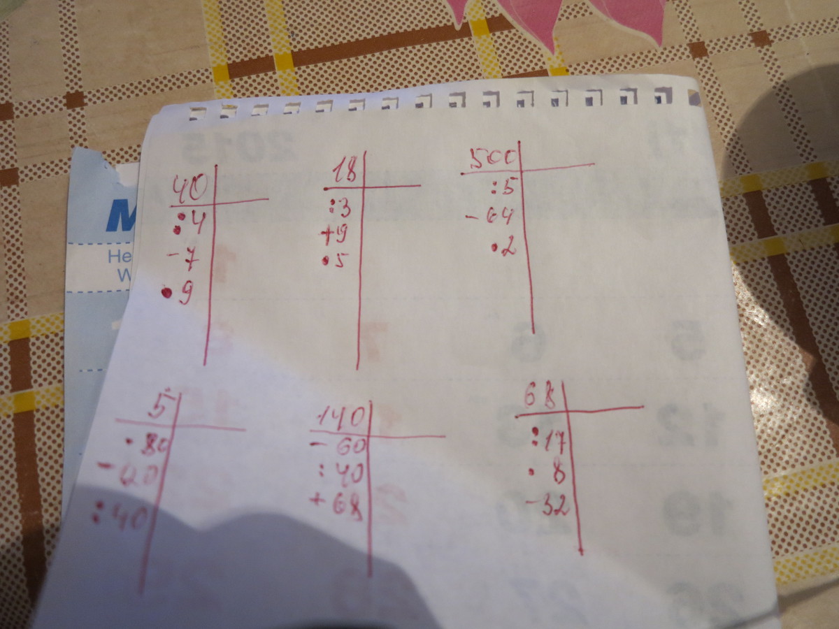 я написала как у вас в таблици написано по очереди вот 1 таблица 40:4=10 10-7=3 3*9=27