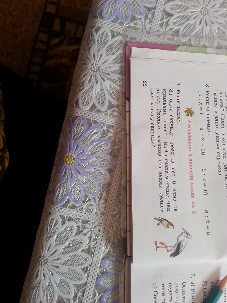 дрозд делает6взмахов за мин а аист на 4 взмах меньше чнм дрозд сколько взмахов делает аист за минуту . помогите решить ?