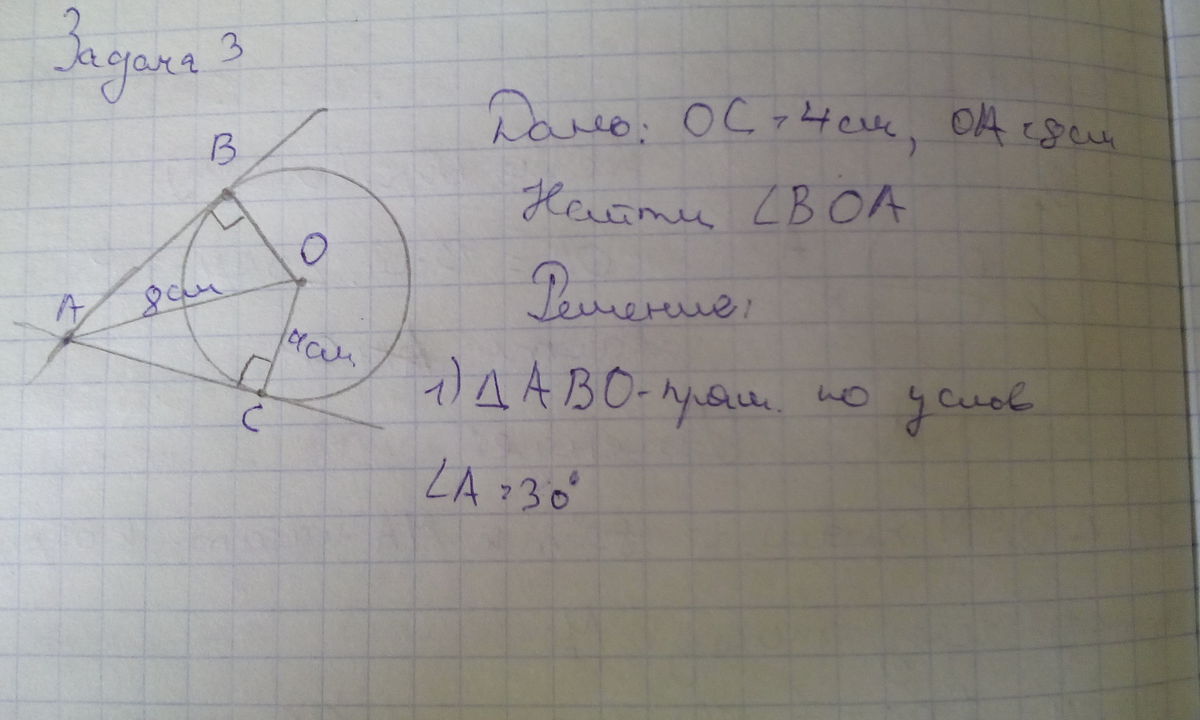 но в условии не сказано , что он = 30 . Нужно сказать, что в прямоугольном треуг. если катет в два раза меньше гипотенузы, тогда он лежит против угла 30 градусов