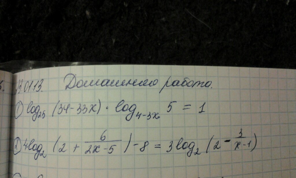 log_25(34-33x)*(1/log_5(4-3x))=1