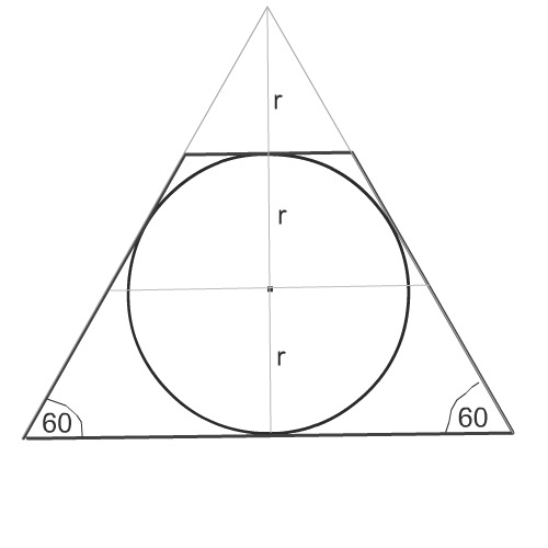 найдите площадь круга, вписанного в равнобедренную трапецию с большим основание, равным 18 и острым углом 60 градусов.