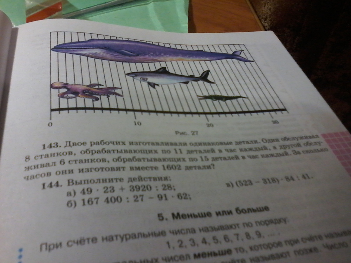 помагите решить задачу двое рабочих изготавали одинаковые детали .Один обслуживал 8 станков ,обрабатывающих по 11 деталей в час ,а другой обслуживал 6 станков ,обрабатывающих по 15 деталей в час каждый . за сколько часов они изготовят вместе 1.602 детали номер 143