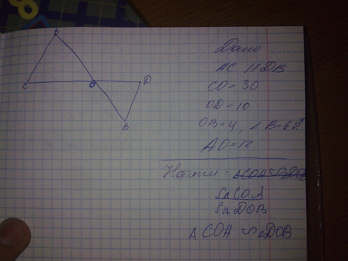 А, так же подобие можно доказать так - AOC = DOB как вертикальные, CO/OD=AO/OB=3/1. Разницы нет. Удачи в учебе!