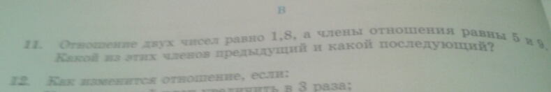 9 : 5 = 9/5 = 18/10 = 1,8. (Можно сразу посчитать на калькуляторе:9:5=1,8). Это соответствует условию. Значит, если для чисел 5 и 9 отношение равно 1,8, то 9 - это первый член этого отношения, а 5 - последующий.